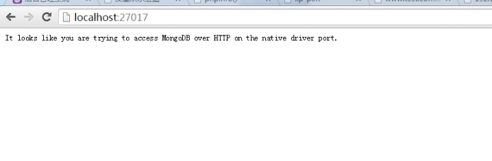 然后再执行net start mongodb 启动服务器。访问url:http://localhost:27017/ 将会出现下面问题