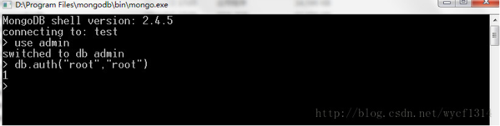 首先需要使用“use 数据库名称,如: use admin”跳转到当前数据库模式下,然后用户登录,如下: